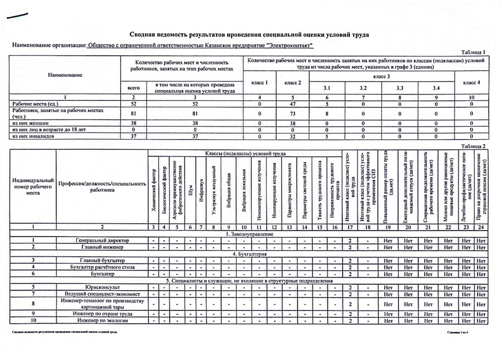 Специальная оценка условий труда